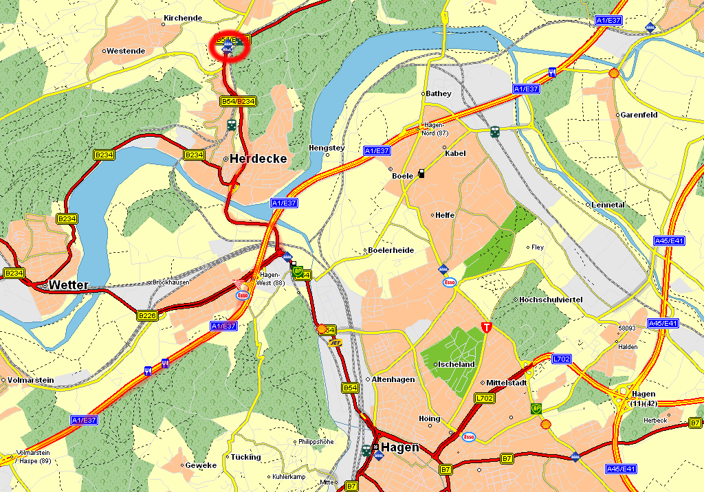 Nach Ortseinfahrt ca. 2 km weiter geradeaus auf den Herdecker Bach