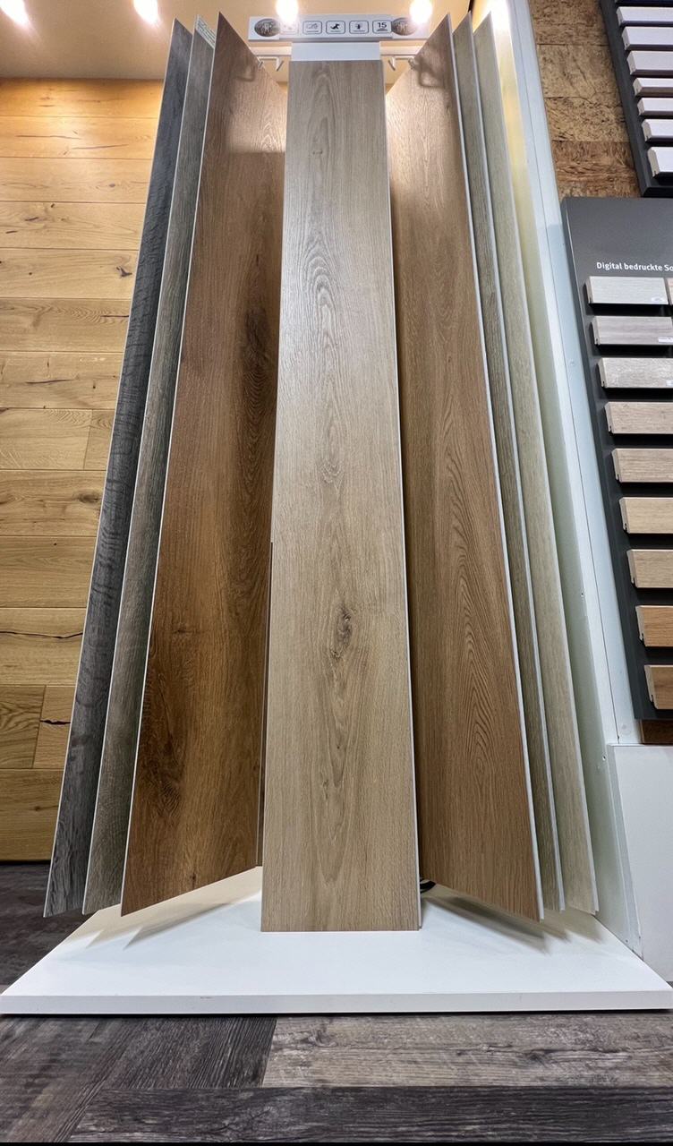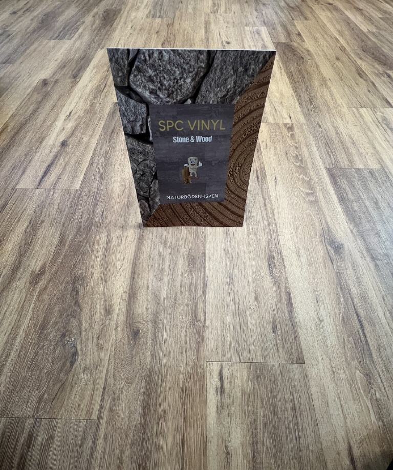 SPC-VINYL ist wasserfest und in tollen Stein-oder großen Landhaus-Dielen-Optiken erhältlich.